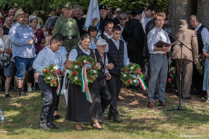 A pontban délben elkezdődött megemlékezést egy honvédkereszt megáldása előzte meg az Aklosban, a katonatemetőben zajló esemény pedig Vitéz Bartha Mihály úzvölgyi veterán köszöntésével és zászlófelvonással kezdődött, majd Csíkszentmárton polgármestere köszöntötte az egybegyűlteket, akiknek többsége a rekkenő hőség miatt a fák árnyékába húzódott az esemény ideje alatt.