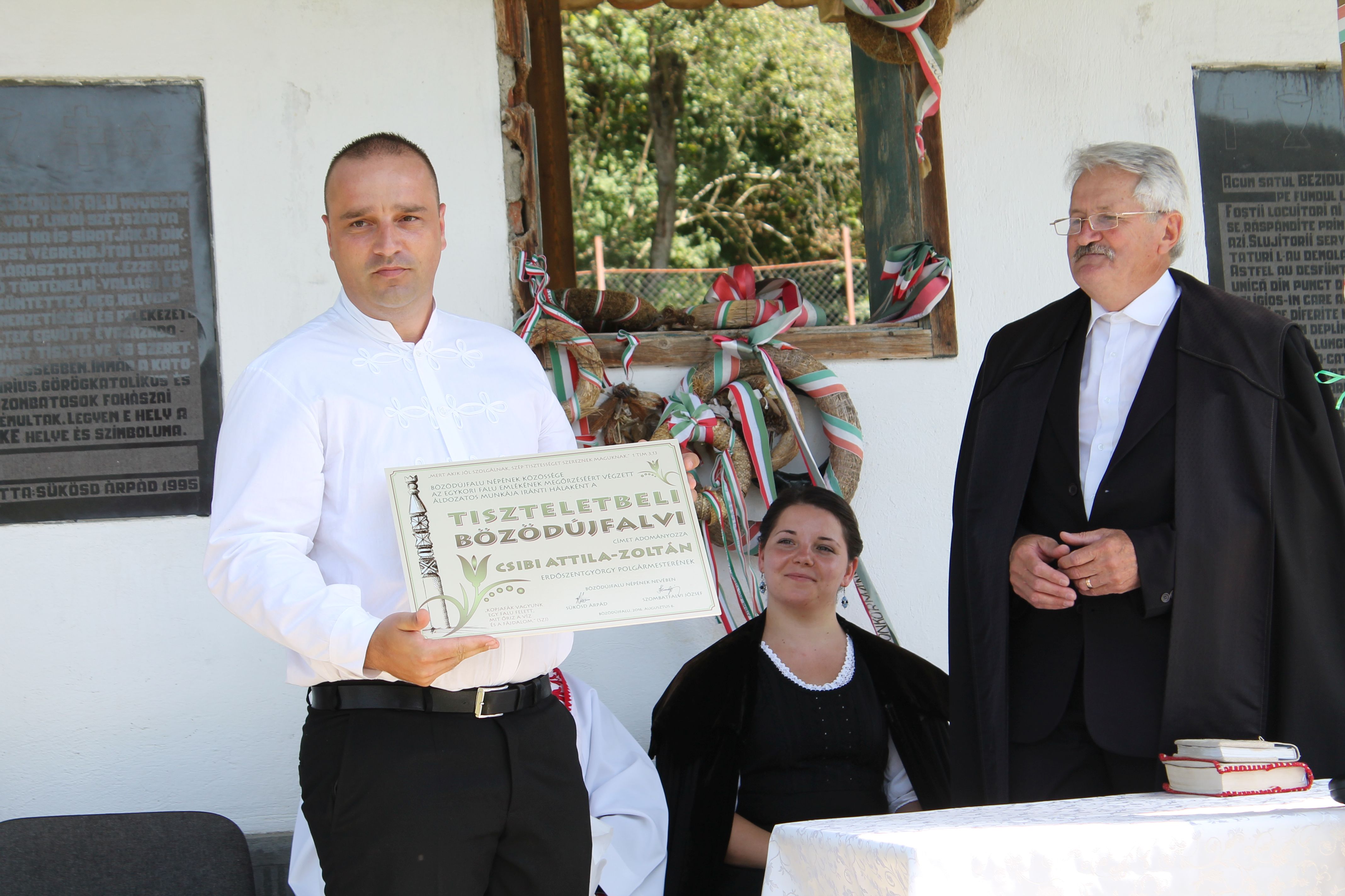 Az elmúlt években álmaimban nagyon sokszor végigjártam a falu utcáit, háztól házig, szinte hallottam az ott lakók hangját. Az ébredés után mindig nagyon fájt, hogy többé nem tehetem, csak álmaimban. Nagyon megfogyatkoztunk, s bár sokan eljöttek vendégként, jó barátként, egyre kevesebben vagyunk, akik itt születtünk, akikben elevenen élnek az emlékek. Amikor mi már nem leszünk, már nem szólhatunk, kiáltani fognak a kövek: múltról, örökségről, rólunk. Ezért ott, ahol most élünk, adjuk át Bö-zödújfalunak a szellemiségét és mindenki hozza el gyermekeit, unokáit, dédunokáit, hogy legyen folytatás – szólt az egykori jó szomszédokhoz, kedves ismerősökhöz az esperes, majd átadta Csibi Attila Zoltán erdőszentgyörgyi polgármesternek az oklevelet, amellyel a közösség tiszteletbeli bözödújfalusivá fogadja az elöljárót, aki oroszlánrészt vállalt abban, hogy az egykor víz alá került település emlékét elevenen tartsák.