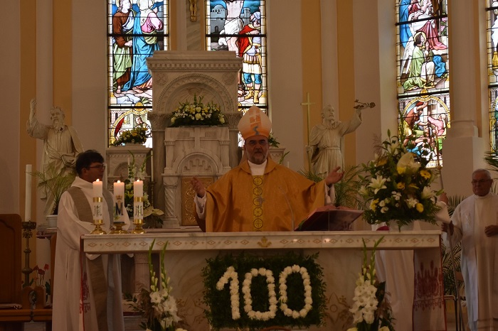 Az ünnepi szentmisét követően a templom száz évének rövid összefoglalóját hallhatták a jelenlévők, amely közösségi kezdeményezésre és összefogással épült fel.