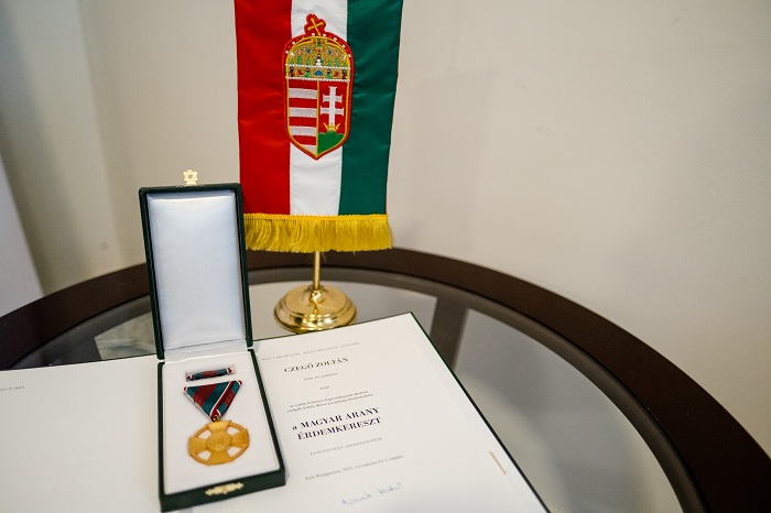 Költői, írói munkássága, az erdélyi költészet hagyományának ápolása érdekében kifejtett munkássága elismeréseként a Magyar Arany Érdemkereszt kitüntetést vehette át Czegő Zoltán pénteken Magyarország Csíkszeredai Főkonzulátusán.