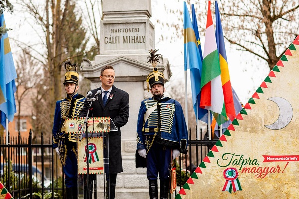 A külgazdasági és külügyminiszter szerint a magyarságnak, akárcsak 1848-ban, ma is összefogva kell megvédenie szabadságát. Szijjártó Péter Marosvásárhelyen, a székely vértanúk emlékműve mellett beszélt erről csütörtökön, a nemzeti ünnep alkalmából tartott rendezvényen.