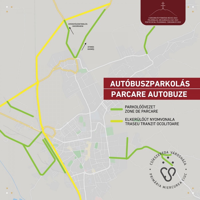 A Háromszék irányából jövő zarándokbuszok a Brassói úton (a MIDA-tól az állomásig terjedő szakasz külső sávján) állomásozhatnak. A Pálfalva felől érkező buszok a 4-es számú községi út mentén, a Csíkszentlélek irányából érkezők pedig a Szentlélek utcában és mellékutcáiban parkolhatnak (a Hunyadi János utcától a város kijárata felé eső szakaszon).