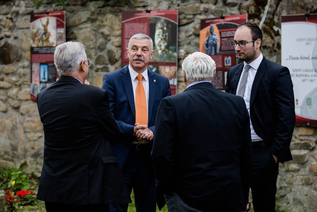A műemlék templom belső kőfalára helyezett Szent László élete, kultusza és szellemi öröksége című kiállítást id. Lomnici Zoltán, a Szent László Tanácsadó Testület tagja, Magyarország Legfelsőbb Bíróságának volt elnöke nyitotta meg. Elmondta: a kalotaszegi születésű Okos Márton kereste meg tavaly tavasszal azzal az ötlettel, hogy jó lenne, ha az ország Szent Lászlóra emlékezne az idei emlékévben, és az ügynek kellene egy kis sajtó- és civil támogatás. Mint mondta, örömmel karolta fel a kezdeményezést, és a múlt év augusztus 17-én jelentették be Potápi Árpád János államtitkárral és Okos Mártonnal hárman, hogy a Nemzetpolitikai Államtitkárság meghirdeti a Szent László-emlékévet. A kiállítás anyaga több nyelven készült el, és már több országban és Magyarországon állították közszemlére. Ezt követően Jánó Mihály művészettörténész, kurátor ugyancsak a templomfalra rögzített Szent László-legenda falképei a székelyföldi templomokban című kiállítást nyitotta meg. A pannókon levő fotókat Mudrák Attila, az Esztergomi Keresztény Múzeum munkatársa készítette.