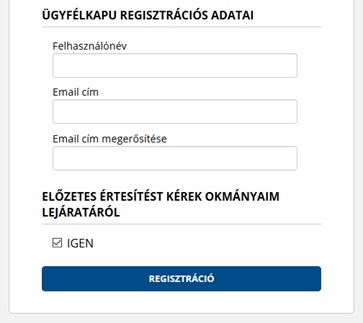 Az itt megadott email címet állítja be a rendszer a személyes tárhelyhez is. Az email címet később meg lehet változtatni. (Hogy pontosan hogyan lehet megváltoztatni a megadott email címet, erről is szó van a Hogyan nyissak Ügyfélkaput? c. írásban.)