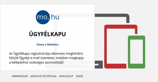 A regisztráció sikerességéről üzenetablakban kap tájékoztatást:
